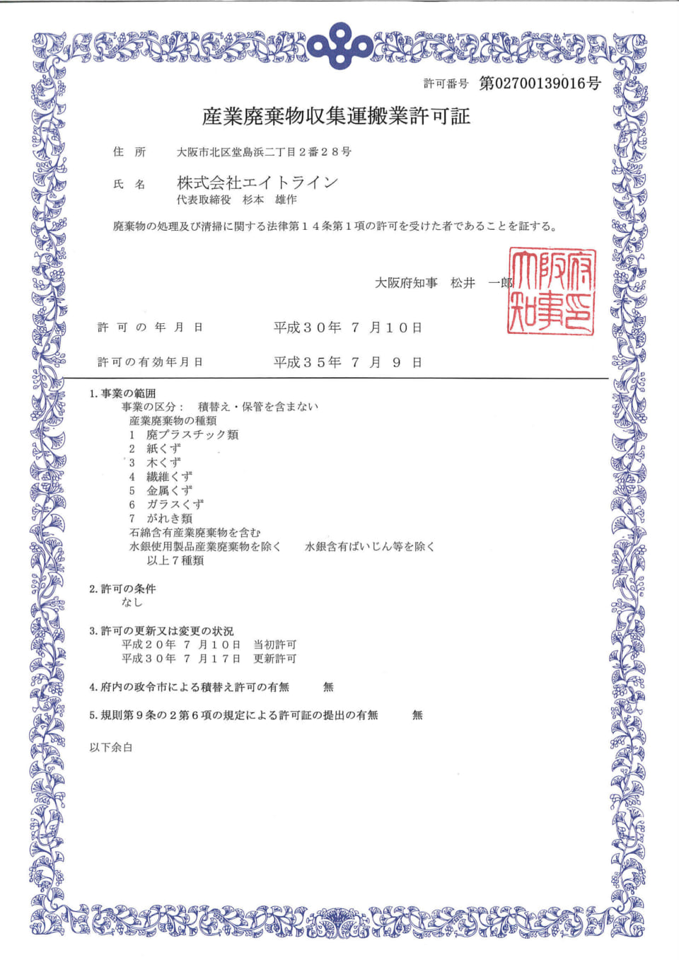 産業廃棄物収集運搬許可証大阪